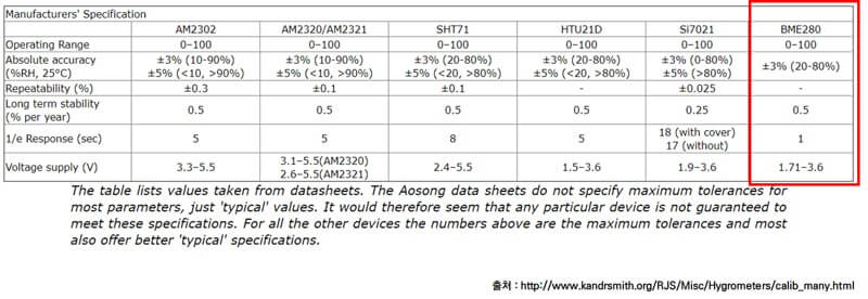 Comparison between AM2302, SHT71, HTU21 D, SI7021 and BME280 is as follows.