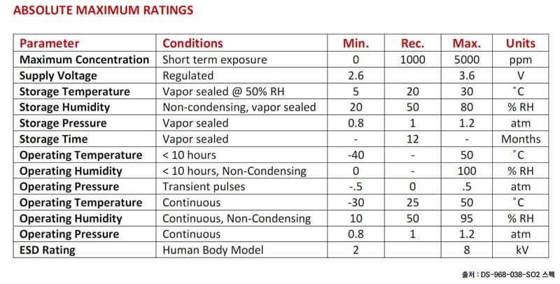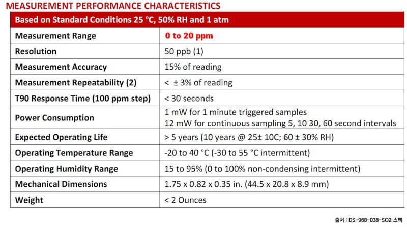 [DGS-SO2 sensor specifications ]