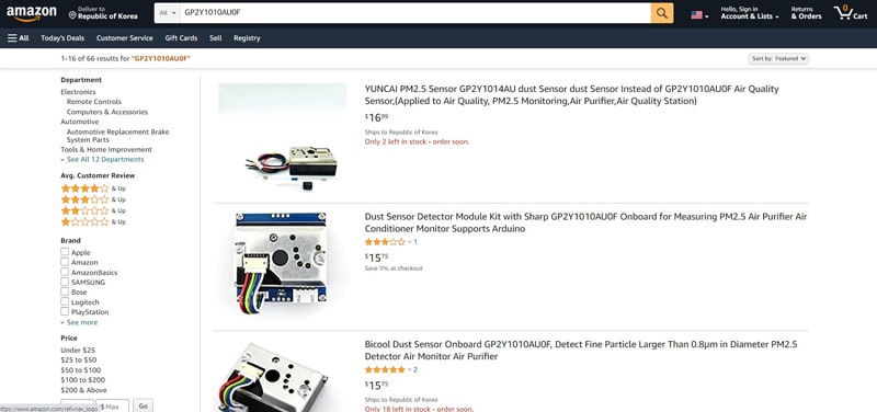 As follows, the [GP2Y1010AU0F] sensor used in the book [Arduino Sensors for Everyone] can be purchased at Ali Express, Amazon.
