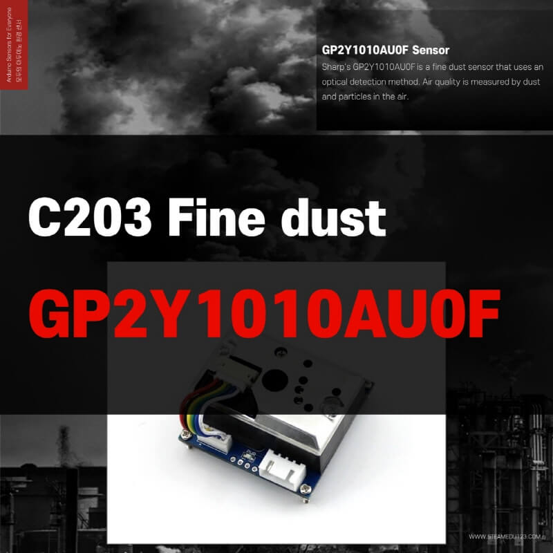Sharp's GP2Y1010AU0F sensor is a fine dust sensor that uses optical sensing method. It measures air quality with the dust and particles in the air.