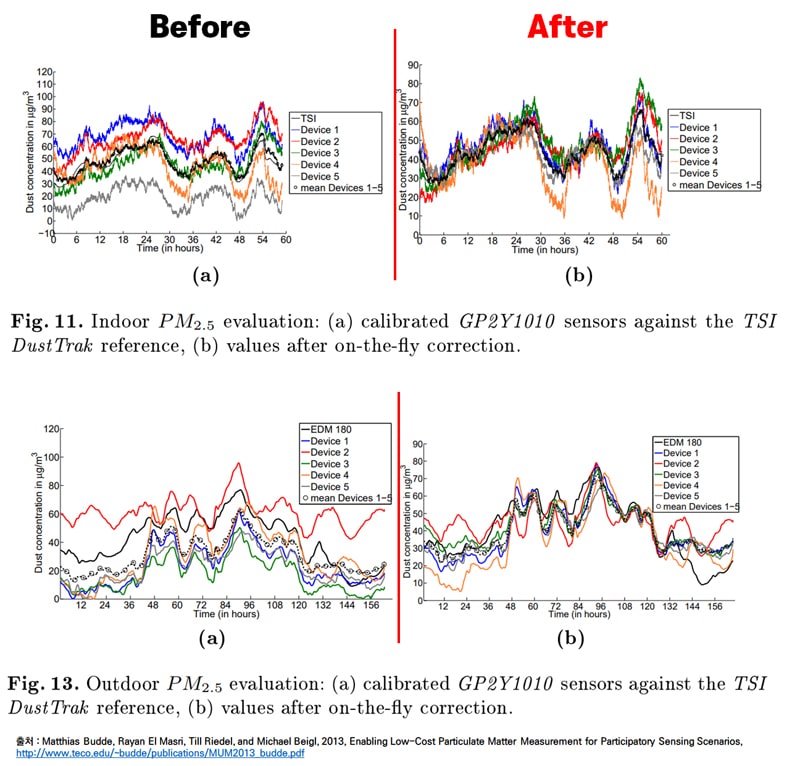 These sensors practically used by removing noise from the data and calibrating it with expensive high-performance fine dust measurement equipment. To use the sensor properly and practically, there are two things to consider: noise removal and zeroing.