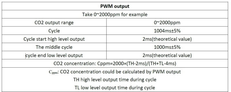 (1) The measurement range of PWM CO2 concentration is 0~2000ppm.