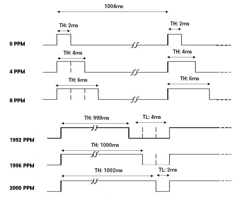 (2) Measurement is possible with Cppm=2000×(TH-2ms)/(TH+TL-4ms). For example, 1992 ppm = (998-2)/(998+6-4).
