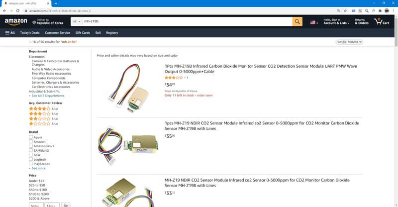 Purchasing the MH-Z19B sensor