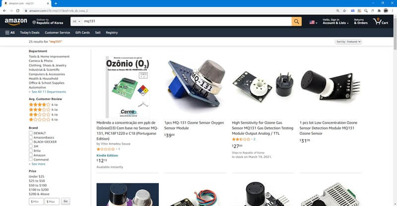 As follows, the [MQ-131] sensor used in the book [Arduino Sensors for Everyone] can be purchased at Ali Express, Amazon.