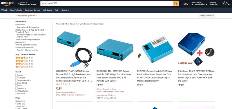 As follows, the [PMS7003] sensor used in the book [Arduino Sensors for Everyone] can be purchased at Ali Express, Amazon.
