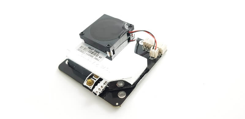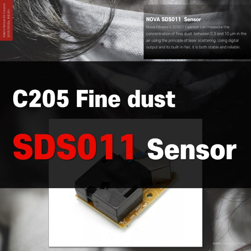 Nova Fitness's SDS011 sensor can measure the concentration of fine dust particles between 0.3 and 10 μm in the air using the principle of laser scattering. Using digital output and its built-in fan, it is both stable and reliable.