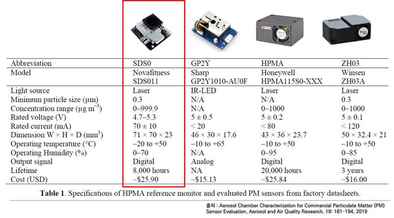 The Aerosol and Air Quality research paper (19: 181-194, 2019) showed that the Novafitness SDS011 sensor is superior to the Sharp GP2Y1010AU0F and Winsen ZH03A sensors.