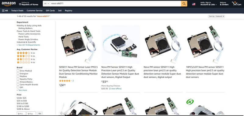 As follows, the [SDS011] sensor used in the book [Arduino Sensors for Everyone] can be purchased at Ali Express, Amazon.