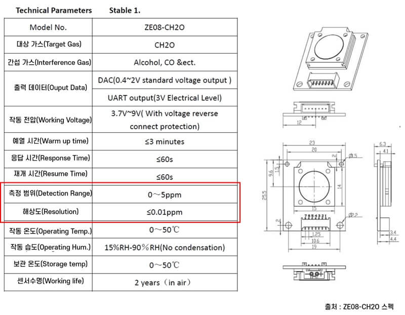 [48] ZE08-CH2O V1.0 Datasheet, “Technical Parameters”, p3