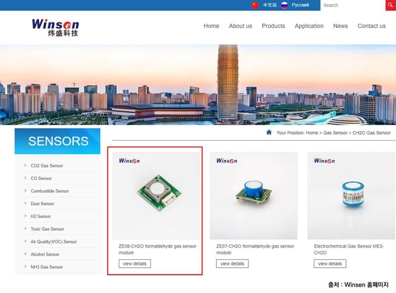 WINSEN manufactures various types of formaldehyde sensors. ZE08-CH20, ZE07-CH20, and ME3-CH2O sensors are provided.